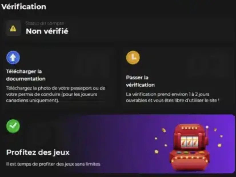 Après la création de votre compte, via la procédure Betify sign up précédemment décrite, il faudra également compléter votre profil en cliquant sur Vérification pour finaliser le tout. En outre, nous vous demanderons aussi de télécharger un document d’identité, comme votre carte nationale d’identité ou votre passeport, afin de vérifier que les informations concordent et que vous avez bien 18 ans. De même, nous aurons aussi besoin d’un justificatif de domicile afin d’avoir l’assurance que votre lieu d’habitation est le bon.