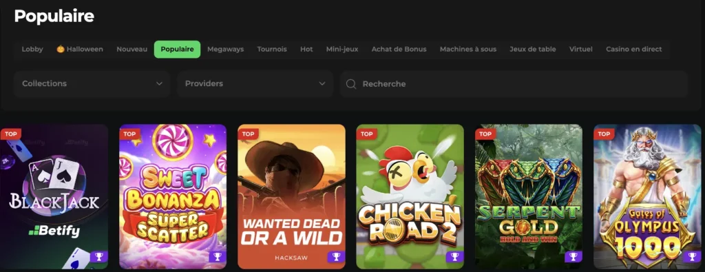 Difficile de faire son choix quand on dispose d’autant de machines de qualité. Avec notre sélection ci-dessous, vous pourrez tenter votre chance sur le top de notre catalogue BetifyCasino jeux.