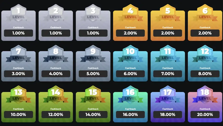 Par ailleurs, en devenant un membre actif de notre communauté, vous serez amené à grimper les échelons de notre club VIP et pourquoi pas accéder au rang ultime, le 18ème, qui vous fera profiter du plus grand nombre d’avantages, dont un gestionnaire de compte personnel et du cashback à hauteur de 20%.