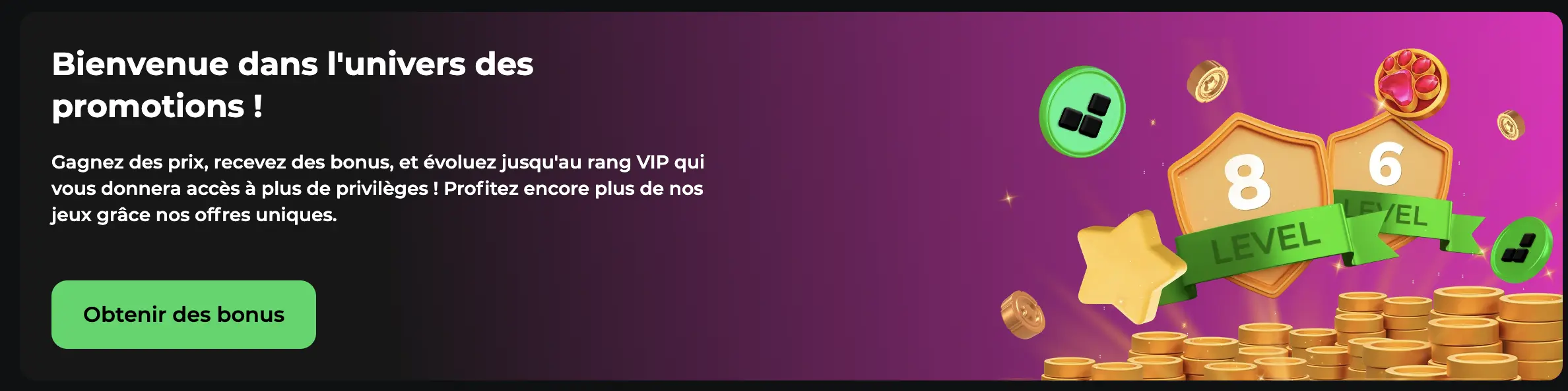 Disposant d’une licence de la Curacao Gaming Authority et présent sur le Web depuis 2023, notre casino permet à ses nouveaux membres et à ses joueurs français déjà inscrits de profiter d’une foultitude de promotions mais également d’une somme d’avantages comme du cashback à récupérer en fonction d’un statut à acquérir au sein de notre club VIP.